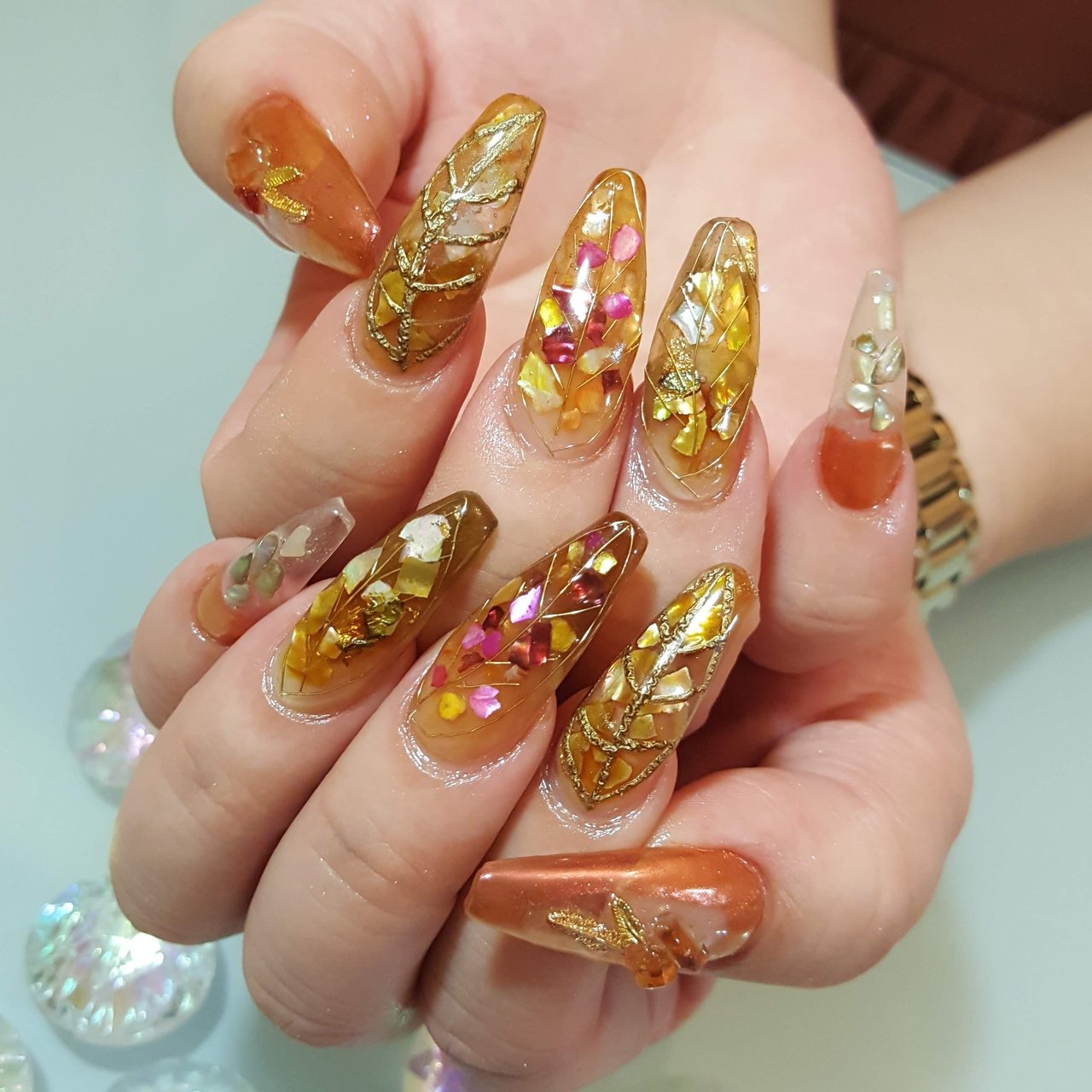 べっ甲 ネイル 秋 ネイル 派手