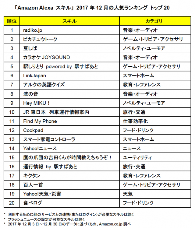 Alexaスキル人気ランキング発表 1位はradiko 2位はあのキャラ Itmedia News
