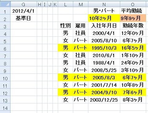 エクセル 勤続 年数 平均
