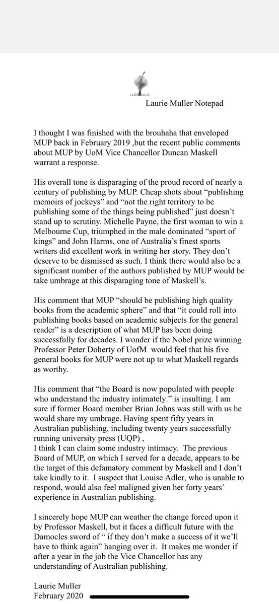 Louise Milligan على تويتر Thread The Vc Of Unimelb Comments Today Re Mupublishing Are Patronising Insulting To Authors Published By Brilliant Louiseadler Of Award Winning Books Walkleys For Myself Melbchief Davitt
