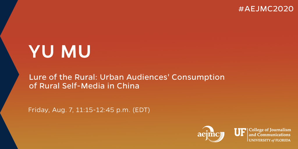 Uf J School On Twitter Doctoral Student Yu Mu Will Be Presenting Urban Audiences Consumption Of Rural Self Media In China At Aejmc2020