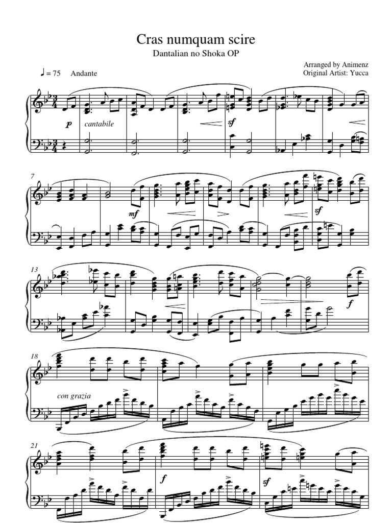 Cras Numquam Scire The Mystic Archives Of Dantalian Op Piano Score Yucca Piano Music Fingering Sheet Music Bar